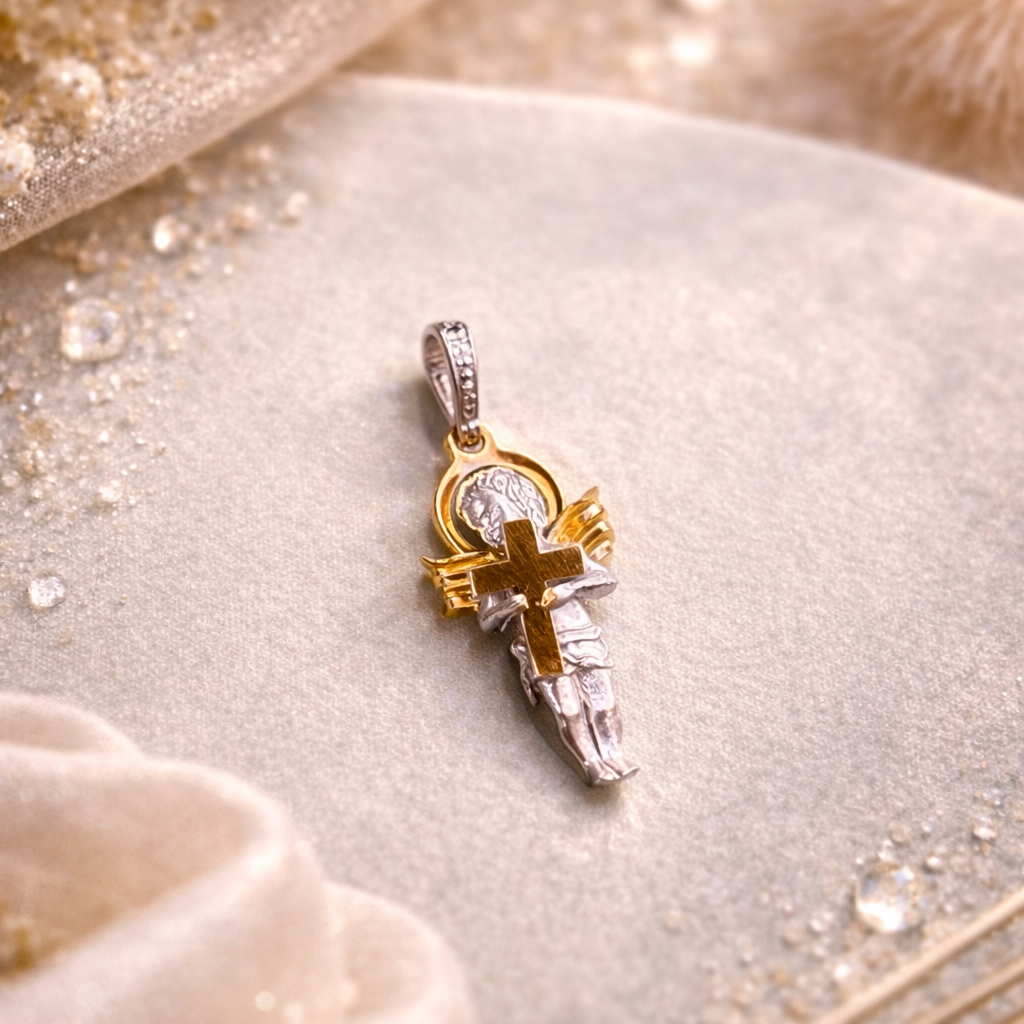 Արծաթյա հրեշտակ կուլոն՝ ոսկեգույն խաչով