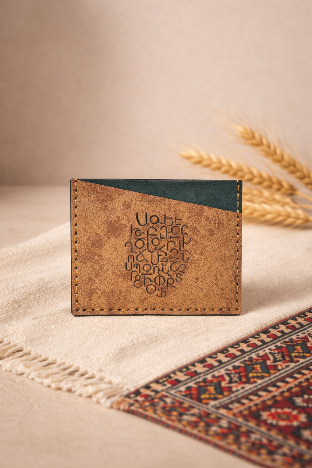 Компактный бумажник из натуральной кожи с уникальной гравировкой армянских букв.
