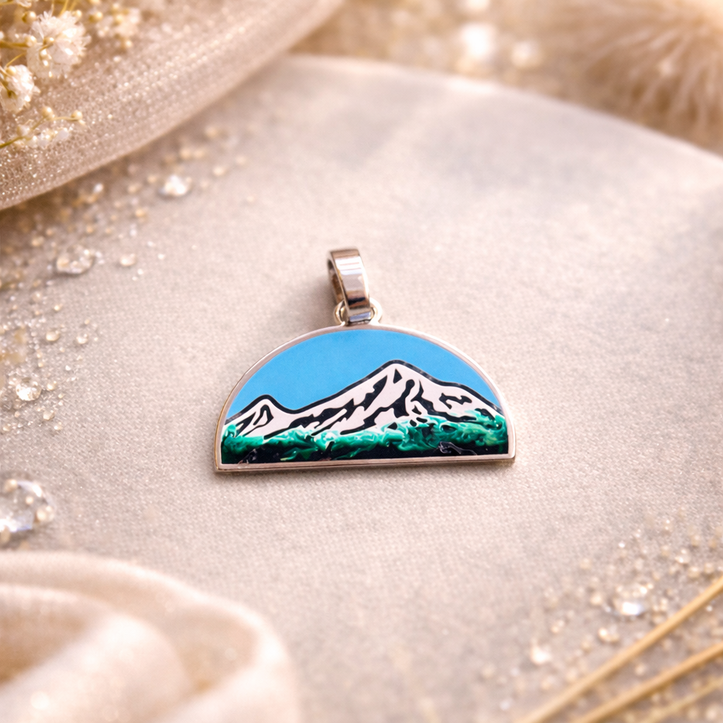 🏔️ Լեռան նրբագեղ գծերը և էմալի վառ գույները ստեղծում են կենդանի ու խոր տեսարան՝ փոխանցելով հայկական բնության գեղեցկությունն ու ուժը։